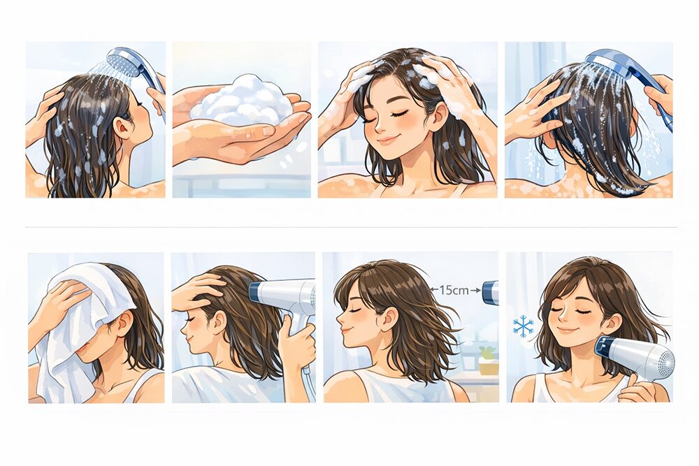 「しっかり乾かす」「頭皮にやさしいものを選ぶ」